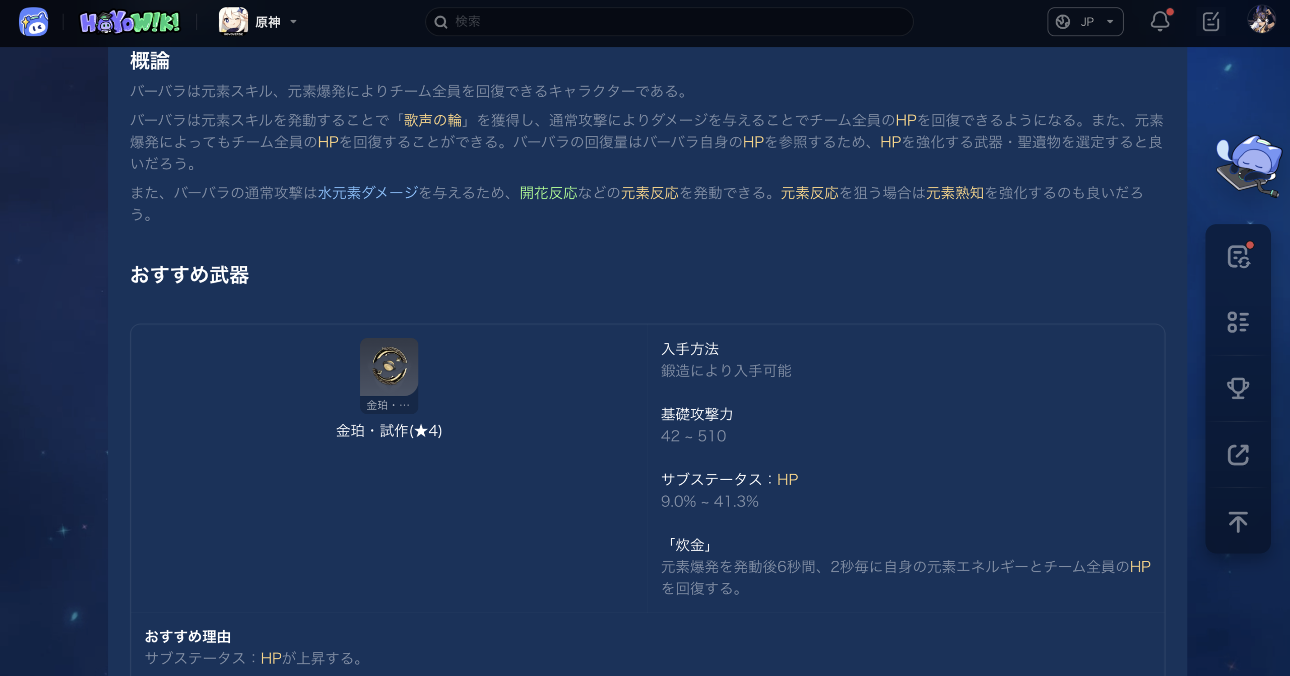 元素反応を起こしたり、アタッカーの火力を底上げする重要なポジションになります。