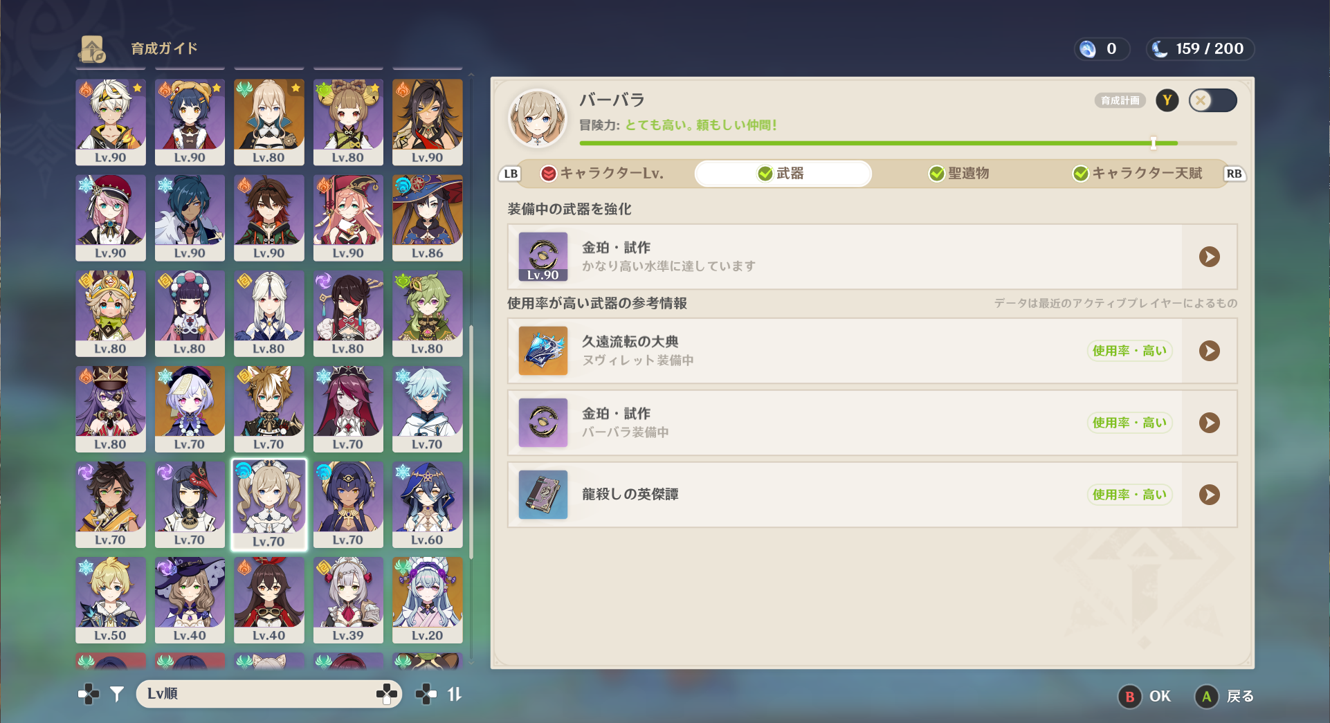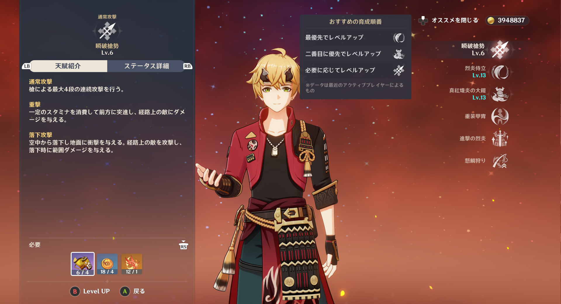 よく使うキャラの、必要な天賦から少しずつ上げていく。