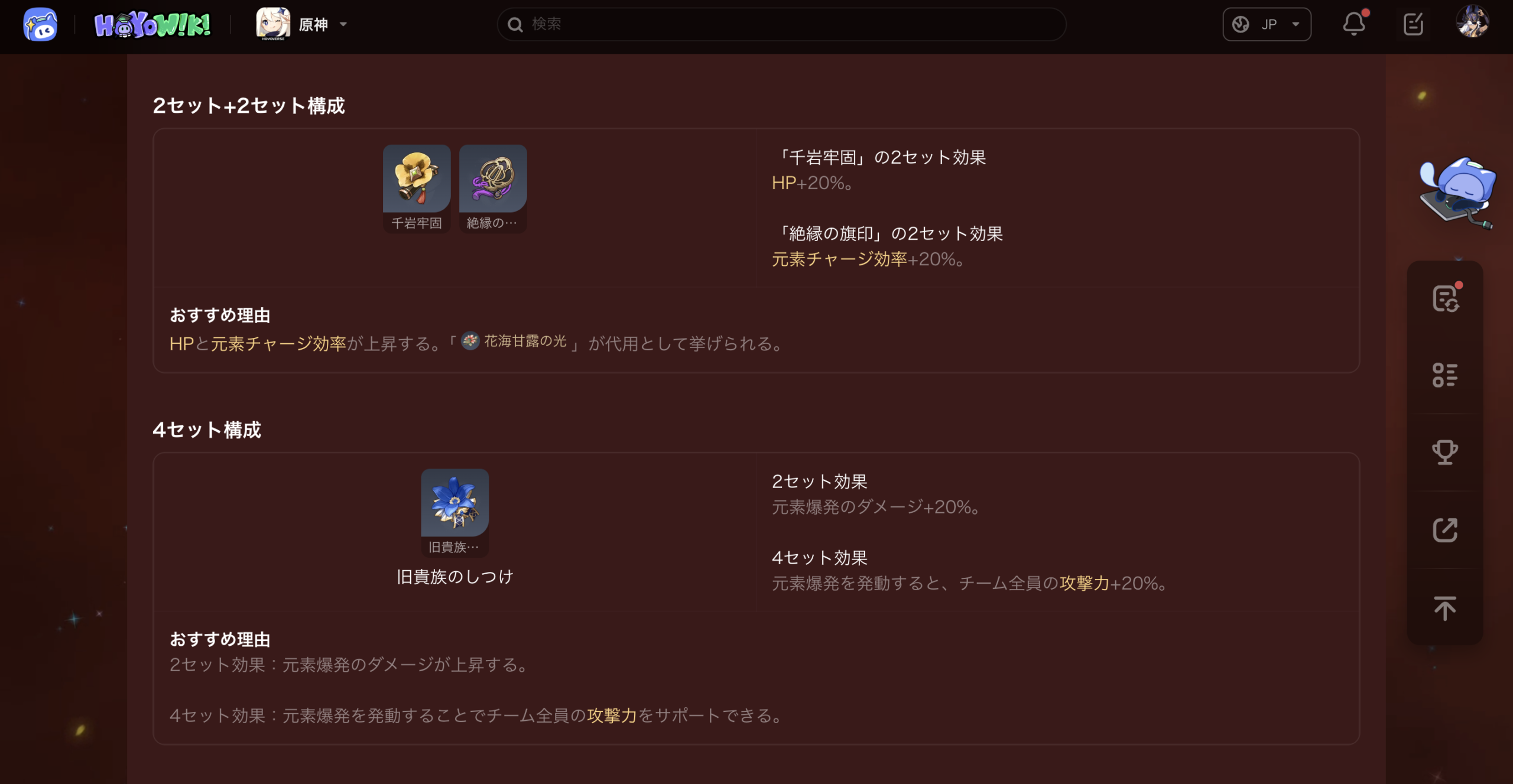 沼に入りすぎないためには、HoYoLABに載っているおすすめサブステータスの数値をひとつの目安にするのがおすすめです。